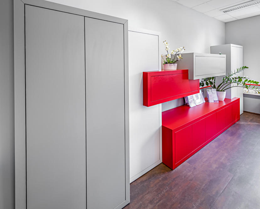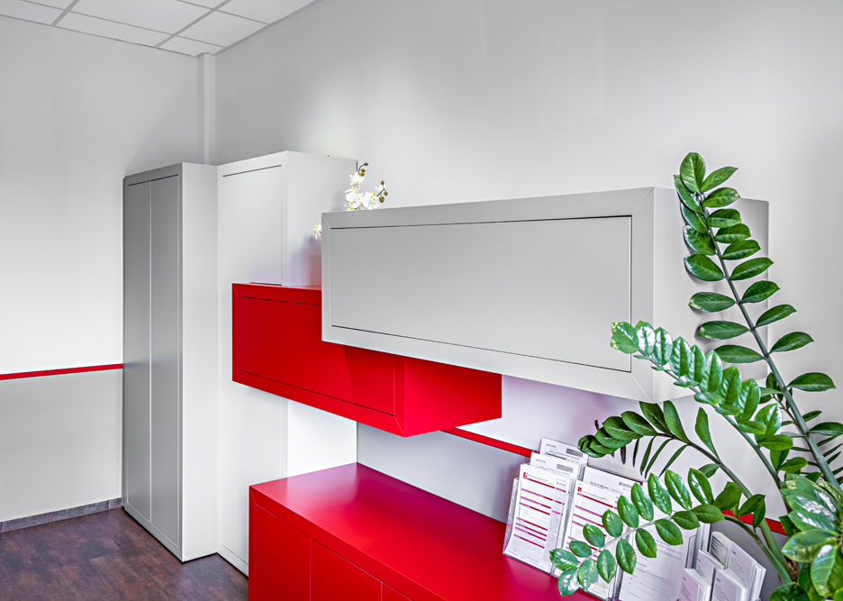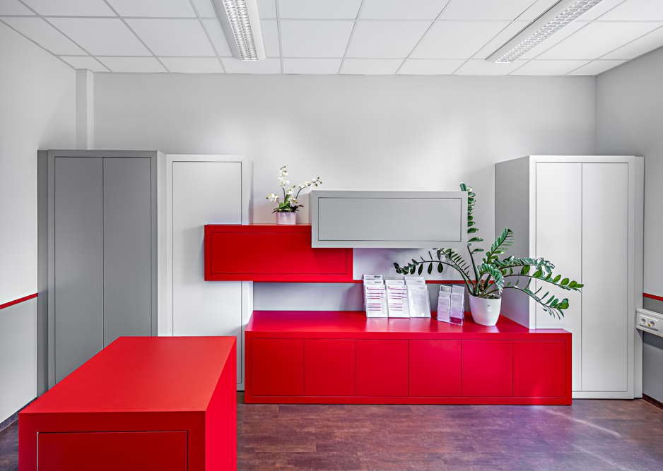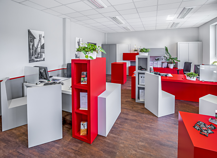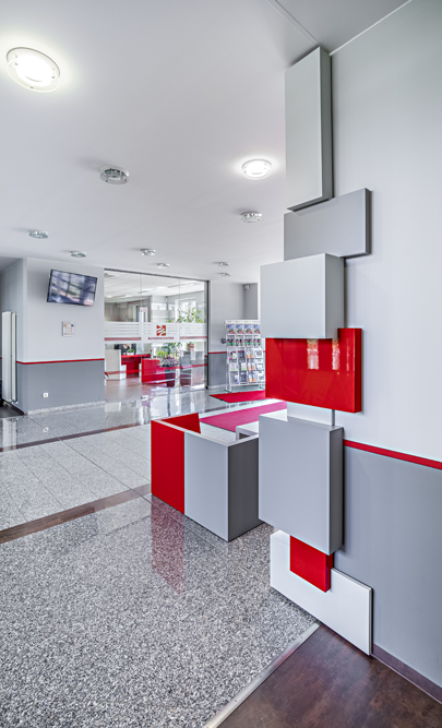 Die innovative Arbeitsweise des Unternehmens findet ihren Ausdruck in der Gestaltung des neuen Foyers sowie in der Möblierung des Servicebereichs. In diesem Kontext wird die Unternehmensphilosophie für Besucher erfahrbar gemacht.