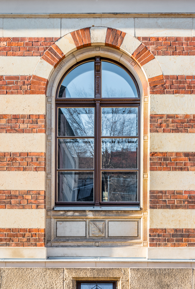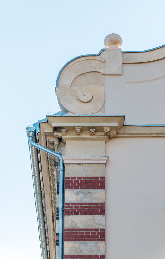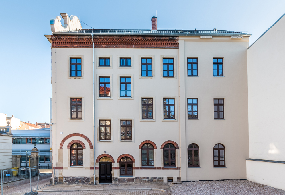 Im Rahmen der Baumaßnahmen wurden die Fassadenansichten und das Dach des unter Denkmalschutz stehenden Gebäudes in der ursprünglichen Gestaltung wieder instandgesetzt.