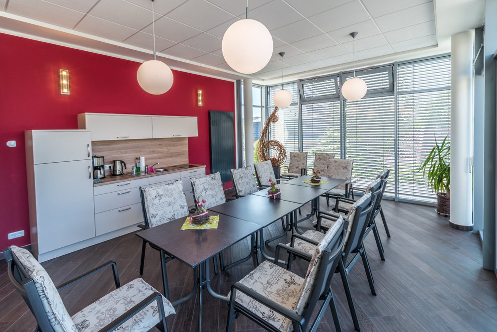Im Zuge der Implementierung von zusätzlichen Räumlichkeiten für gemeinschaftliche Nutzung wurde das Hauptgebäude um einen neuen Mehrzweckraum erweitert. In diesen Anbau sind der neue Hauptzugang sowie ein Aufzug integriert. Dies impliziert, dass sämtliche bewohnten Etagen barrierefrei erschlossen sind. Das Dach des eingeschossigen Anbaus wurde als großzügige Sonnenterrasse konzipiert.