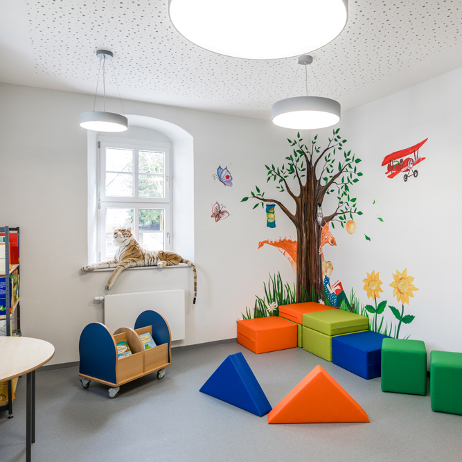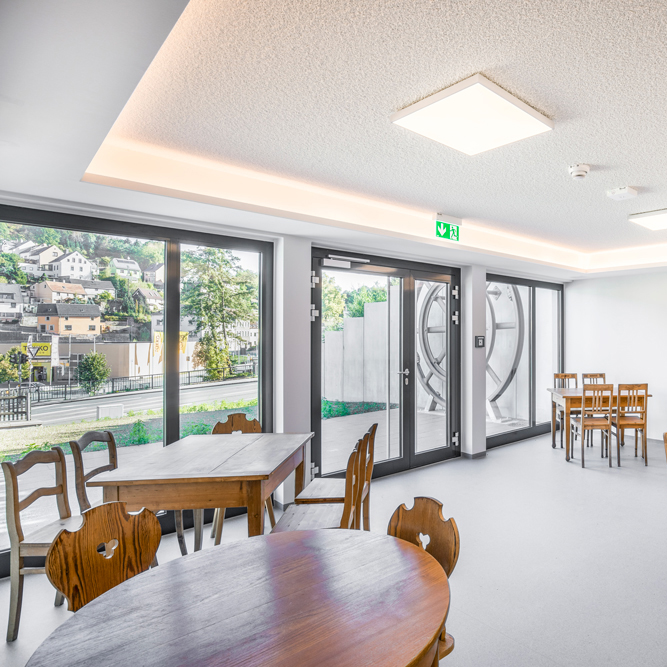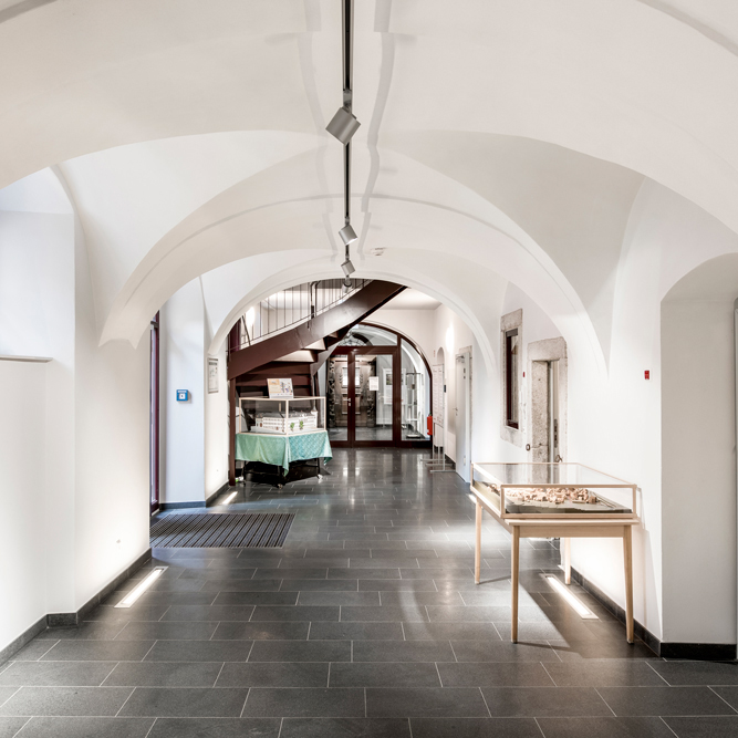 Unter Zugrundelegung des gewünschten Nutzungskonzeptes wurde ein zeitgemäßes und nachhaltiges Raumprogramm umgesetzt. Im Erdgeschoss befinden sich die Ausstellungsräume zur Stadt- und Tuchmachergeschichte als Heimatmuseum.