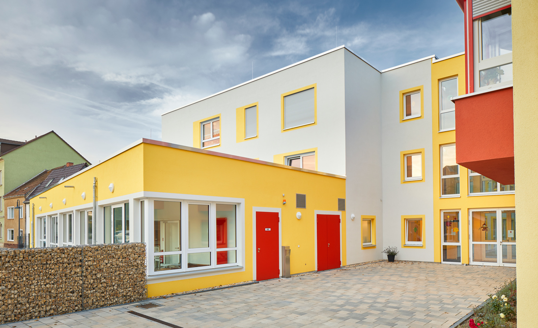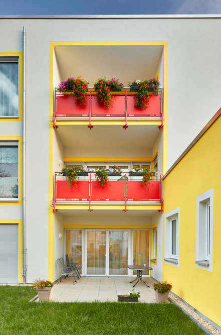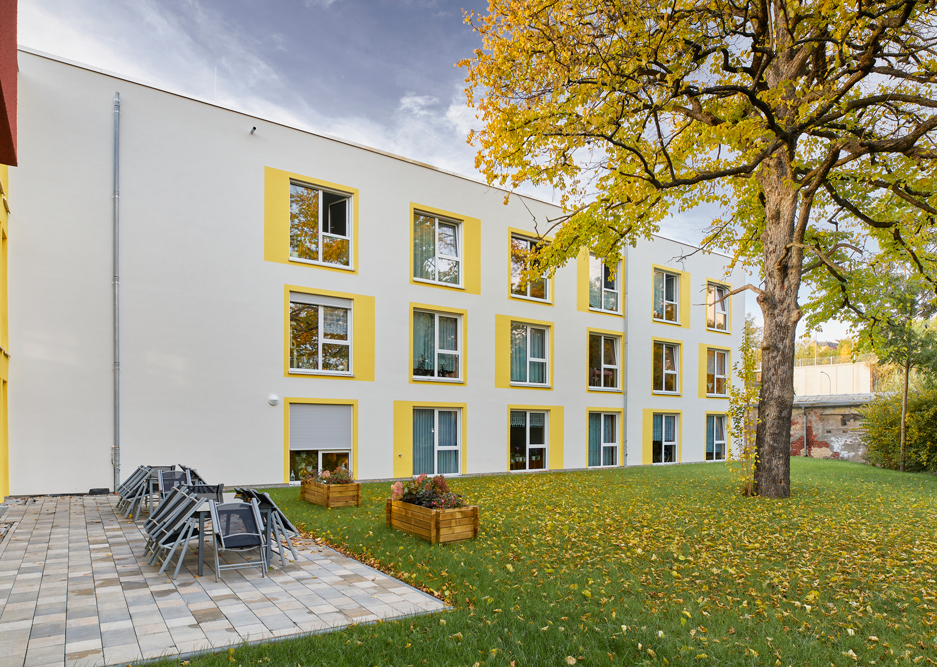 Das Grundstück der Seniorenwohnanlage liegt ruhig, aber dennoch nah am Zentrum der Innenstadt von Werdau. Nun wurde ein Erweiterungsbau mit einem Café errichtet.